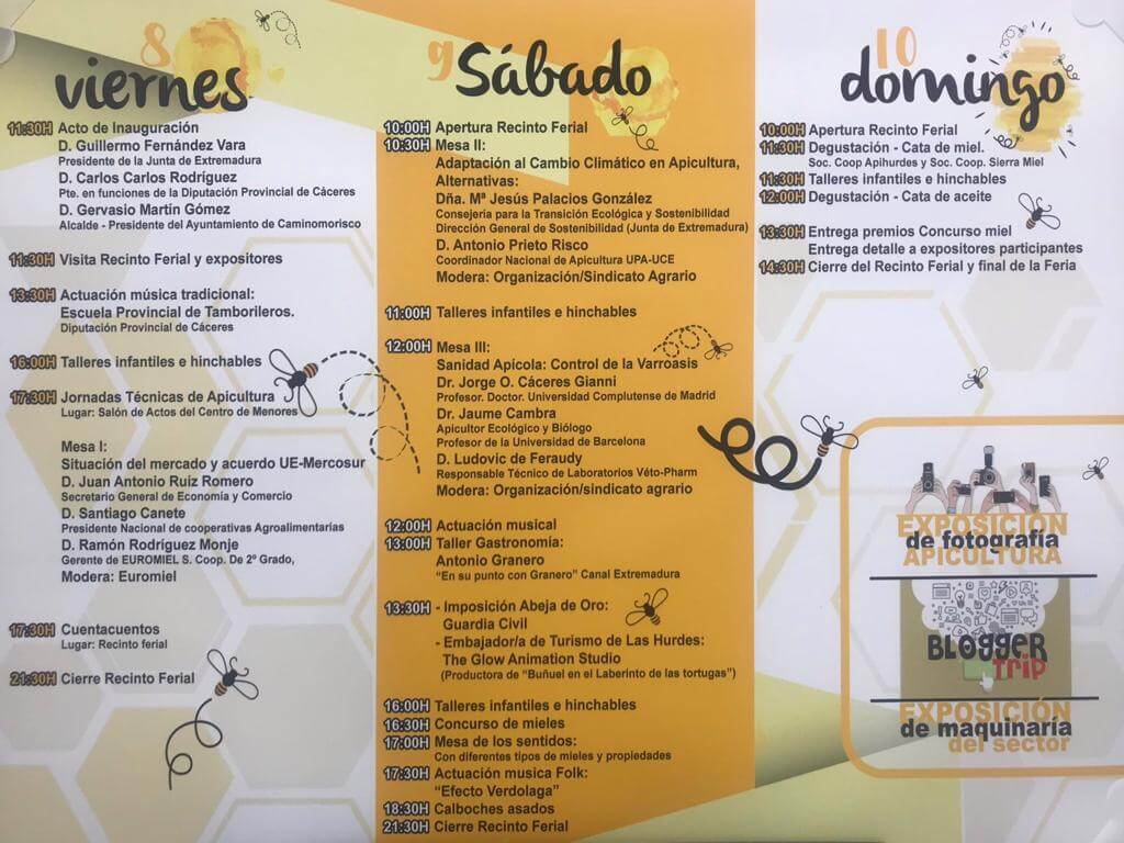 La VII Feria Internacional de Apicultura y Turismo se celebrará los días 8, 9 y 10 de Noviembre 2019 en la comarca de Las Hurdes (Cáceres), en la población de Caminomorisco.